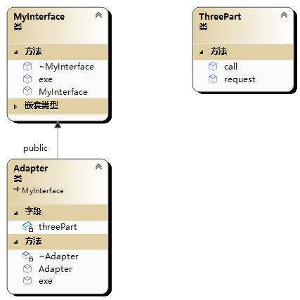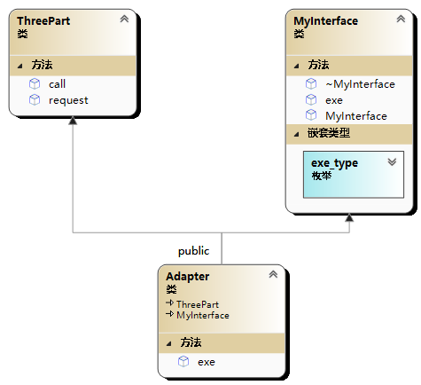 class Adapter:public ThreePart,public MyInterface {