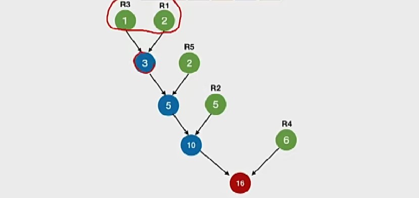 最佳归并树 WPLmin=(1+2)*4+2*3+5*2+6*1=34