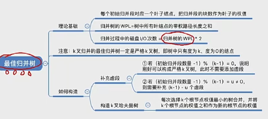 对于k叉归并,若初始归并段的数量无法构成严格的k叉归并树,则需要补充几个长度为0的”虚段”,在进行k叉哈夫曼树的构造。
